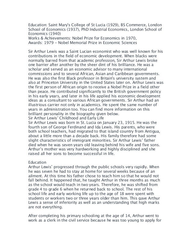 W. Arthur Lewis Quotes. Collective judgment of new ideas is so often wrong that it is arguable that progress depends on individuals being free to back their own judgment despite collective disapproval. W. Arthur Lewis (2013). “Theory of Economic Growth”, p.172, …Quotations by Arthur Lewis, . Share with your friends. "The strength of the scientific establishment in any country is related to its general level of education, not only in supplying …There is no choice... between industry and agriculture. The islands need as large agriculture as possible... It is not ... that agriculture cannot continue to develop if industry is …Sir William Arthur Lewis (23 January 1915 - 15 June 1991) (Fields -Economics) (Awards - Nobel Memorial Prize in Economic Sciences (1979)https://en.wikipedia...Lewis (1950; 831-2) as cited in: Mark Figueroa. "Rethinking Caribbean agriculture, re-evaluating Arthur Lewis misunderstood perspective." (2008). I had no idea in 1933 what …Nobel Laureate in Economics. Sir William Arthur Lewis (23 January 1915 – 15 June 1991) was a Saint Lucian economist well known for his contributions in the field of economic development. …