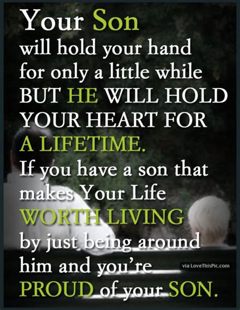 Jun 26, 2021 · Mother and son image quotes. “I’m so blessed to have a son that’s so brilliant and strong. You have a good heart, and I know that you will go places. I love you son! …Best Unconditional Love Mother And Son Quotes And Sayings [2022] Best Mother Son Quotes. I will always be your number one supporter for I care for you the most in this life of ours. ...Sep 21, 2021 · Proud family quotes about sons 1. “I listen to my mother, and that keeps me out of trouble. I’m a good son.” — Mr. T 2. “Be strong out there, my son. Look for the …